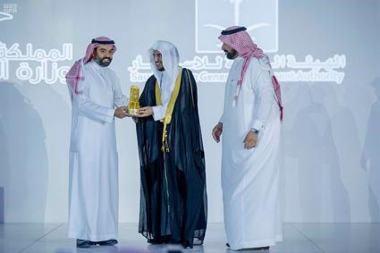 وتسلّم الجائزة نائب وزير العدل الشيخ سعد بن محمد السيف من معالي وزير الاتصالات وتقنية المعلومات المهندس عبدالله بن عامر السواحة.