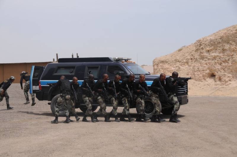 وبعدها كانت كلمة الخرجين وبعد ذلك استعراض طلبة مركز الإعداد والتدريب المشاة العسكرية ورسموا على أرض الميدان كلمة (أمن الدولة) إيمانًا منهم بأهمية أمن الدولة والمسؤولية الملقاة على عاتقهم كرجال قوات الطوارئ الخاصة في إحقاق الحق وإزهاق الباطل.