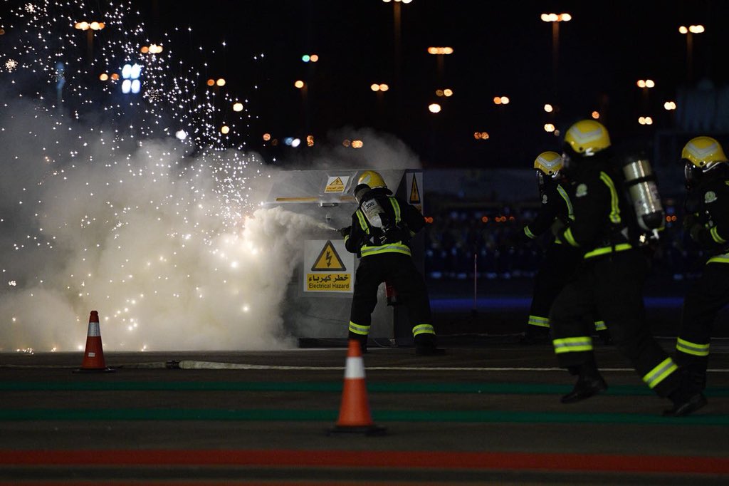 إثر ذلك قدَّم الخريجون عرضاً لعدد من المهارات والتطبيقات العملية منها مهارة قوة التحمل والجهد العالي، وحوادث المركبات، والإنقاذ من حوادث السيول والأمطار والآبار، ومهارات النزول بالحبال من المباني العالية، والتعامل مع حالات الاحتجاز في العربات المعلقة كالتلفريك وعربات الألعاب الهوائية في المدن الترفيهية، وحوادث المواد الخطرة وانهيارات المباني وحرائق المواد البترولية، وحرائق المباني السكنية وقوة التحمل و مهارات الإنقاذ والإطفاء وإخلاء المصابين والتعامل مع حوادث الحرائق البترولية وحوادث المركبات والصعود إلى الأبراج، واستخدام السلالم وأعمال الإنقاذ في حوادث الآبار والمباني العالية، إلى جانب مباشرة حوادث تسرب المواد الخطرة في المنشآت الصناعية، وحوادث انهيارات المباني. تلا ذلك عرض عسكري للخريجين، ثم أداء القسم، وإعلان نتيجة الدورة.