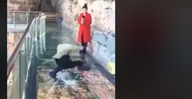 صُدم شاب آسيوي بسبب تحطم زجاج جسر شاهق الارتفاع أسفله.