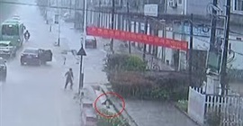 نجح مجموعة من المارة في إنقاذ طفل سقط بحفرة صرف صحي في الصين.
