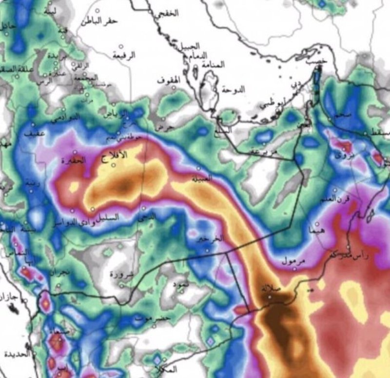 وتفيد تحاليل خرائط الطقس ومتابعة صور الأقمار الاصطناعية ومخرجات النماذج العددية لإعصار مكونو MEKUNU في بحر العرب بأن تتأثر الأجزاء الجنوبية للمنطقة الشرقية (محافظة الخرخير)، منطقة نجران (شرورة) والشريط الحدودي مع سلطنة عمان وصحراء الربع الخالي بالأمطار الغزيرة التي تؤدي إلى جريان السيول والرياح النشطة التي قد تصل سرعتها إلى أكثر من 80 كم/س مثيرة للأتربة والغبار وتؤدي إلى انعدام الرؤية الأفقية.