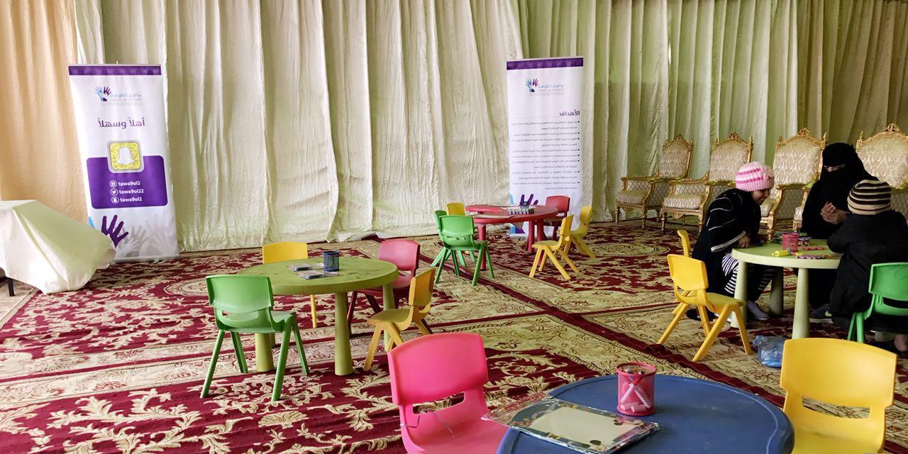 وشاركت المجموعة بخيمة تضم العديد من الأركان منها، ركن التوعية وبها بروشورات ومعلومات تفيد الزائر عن الإعاقات وأنواعها وأسبابها، وركن الأطفال حيث وجد به طاولات للأطفال وألعاب لتعليمهم المهارات.