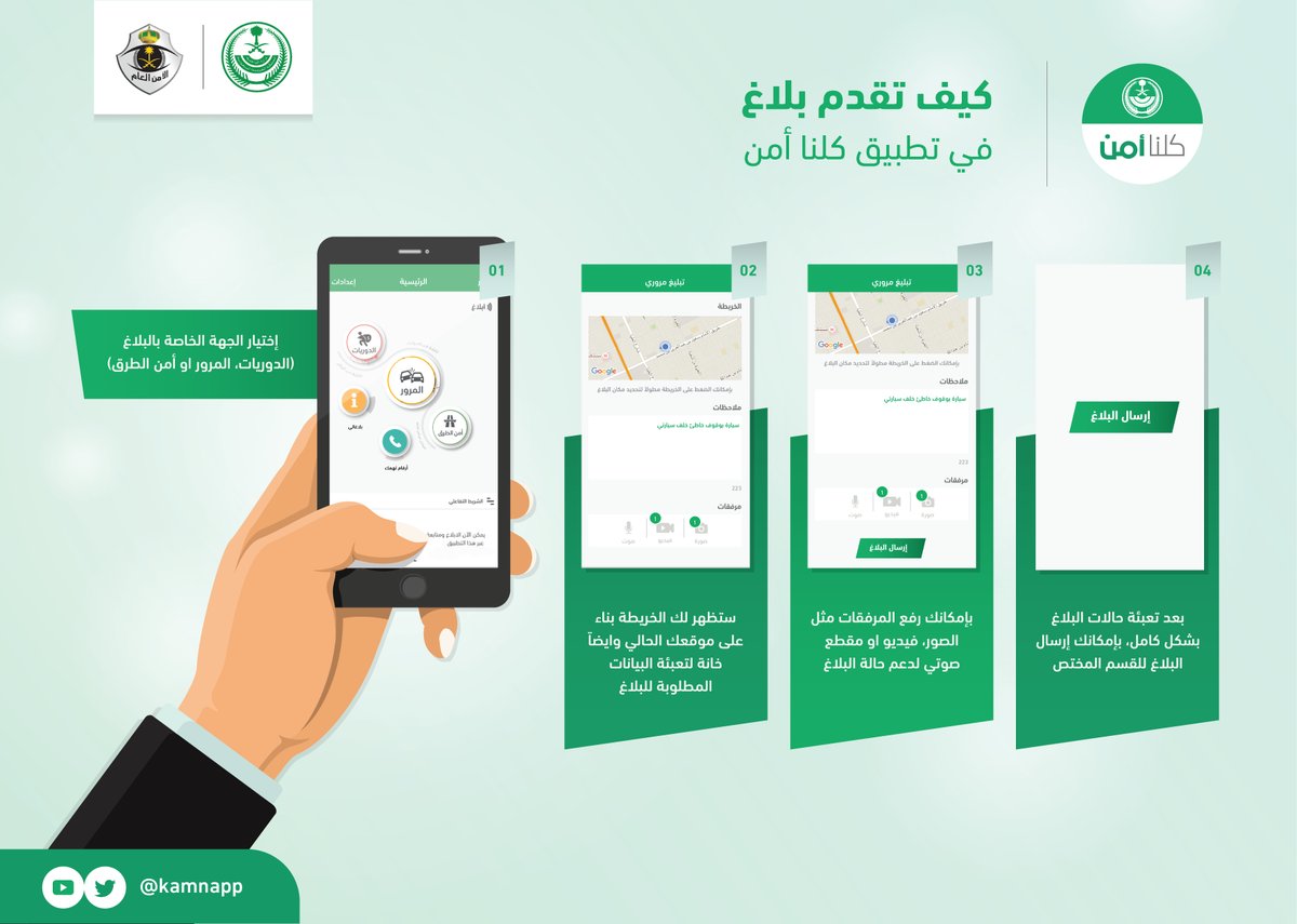 وأضاف التطبيق أنه يمكن الإبلاغ عن هذا النوع من الجرائم، عبر اختيار “الدوريات” في “كلنا أمن”.
