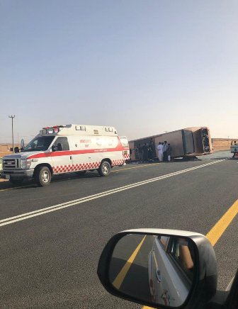 أصيب 27 شخصاً في حادث انقلاب باص على طريق “حائل – تبوك” مساء أمس، حيث باشرت فرق الهلال الأحمر الحادث على الفور.