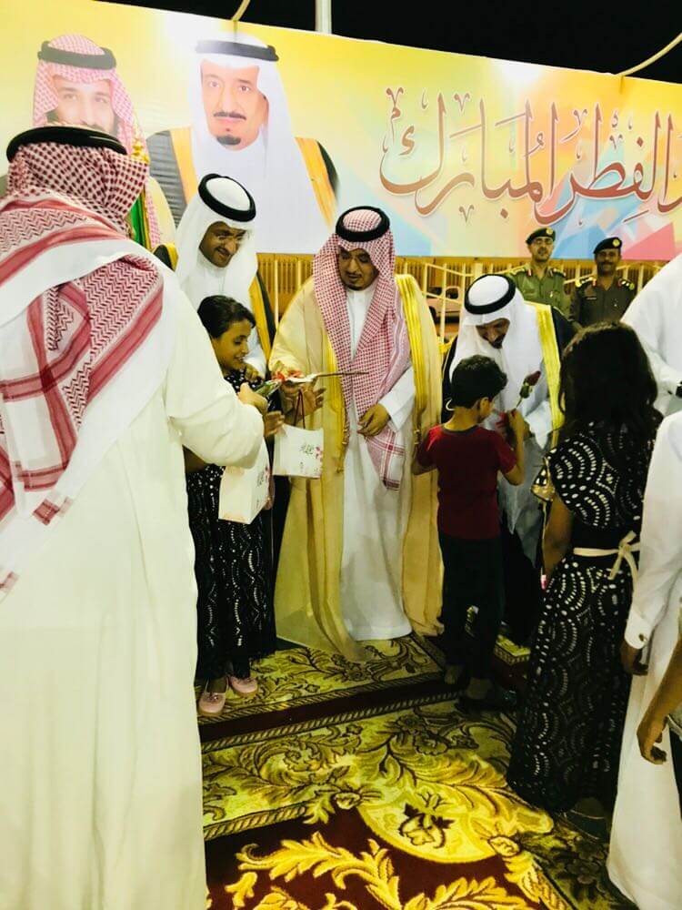 وكان في استقبال المحافظ والحضور أعضاء لجنة احتفالات عيد الفطر، حيث بدأ الحفل بالسلام الملكي ثم افتتاحية ترحيبية وتهنئة القيادة الرشيدة والحضور بعيد الفطر المبارك، ثم آيات من القرآن الكريم.