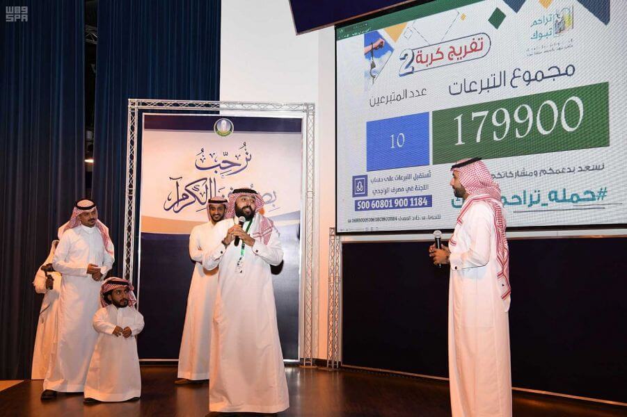 بعد ذلك بدأت فعاليات الحملة بفتح باب التبرعات من رجال الأعمال والميسورين من أهل الخير بمنطقة تبوك الذين تفاعلوا مع الحملة، حيث تجاوز إجمالي التبرعات في يومها الأول مليوناً ومائتين وثمانية آلاف وأربعمائة وخمسين ريالاً، وستستمر لمدة ثلاثة أيام.