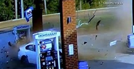 وأظهر مقطع فيديو، المرأة وهي تسير بسرعة جنونية وفجأة فقدت السيطرة على عجلة القيادة لتقتحم محطة وقود، وتصطدم بمضخة غاز.