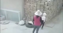 وأظهر مقطع فيديو محاولة الأم منع الطوب من الانهيار لحظة تنبهها لذلك، إلا أنها فشلت لتتساقط القوالب فوقها وفوق طفليها، وبعد قرار سريع تركت أحدهما بموضعه لمحاولة إنقاذ الآخر الذي كان في موقف أصعب ودفن بالكامل.