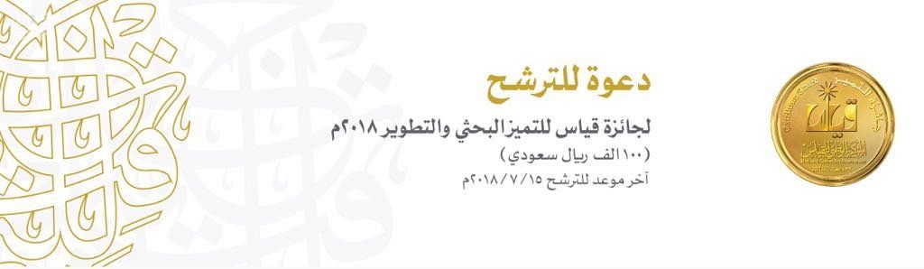 وللمشاركة والاطلاع على تفاصيل الجائزة وشروطها يمكنك زيارة صفحة الجائزة على موقع قياس هنا، علمًا أن 15يوليو هو آخر موعد للترشح.