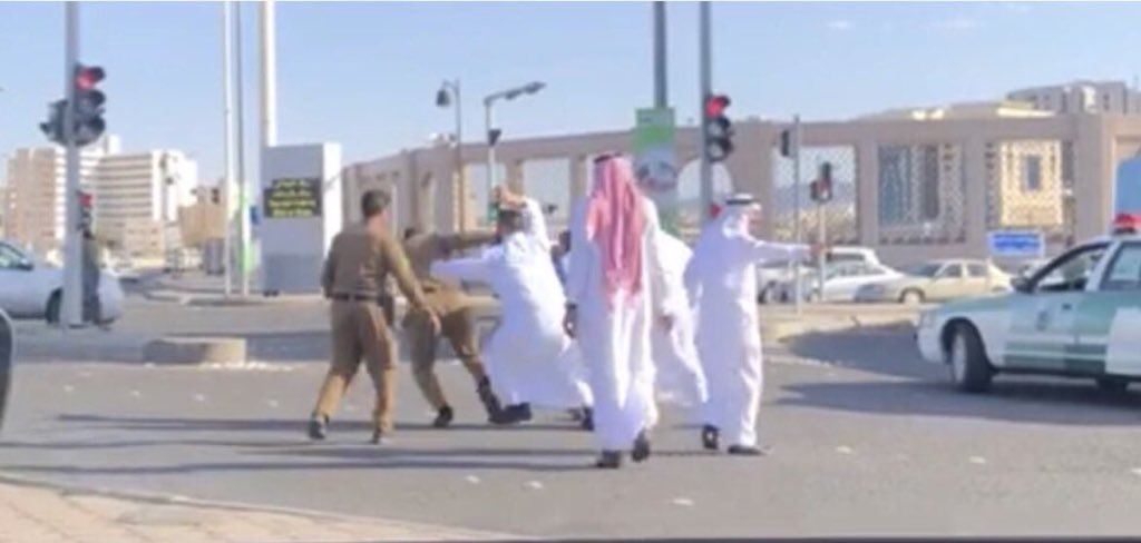 وأوضح الأمن العام في بيان له أن عند الساعة الخامسة عصر اليوم الخميس، وأثناء قيام رجلي مرور بأداء مهمتهما في إدارة حركة المرور بنقطة فرز مروري بتقاطع طريق الملك فيصل مع طريق الملك عبدالعزيز بالمدينة المنورة، وقيامهما بمنع الحركة المرورية العامة في الاتجاه الذي كانت تسير فيه إحدى المركبات، وتوجيه سائقها إلى مسار آخر، فوجئا بترجل ركابها وانهيالهم عليهما بالضرب دون مراعاة لحرمة الوقت والمكان.