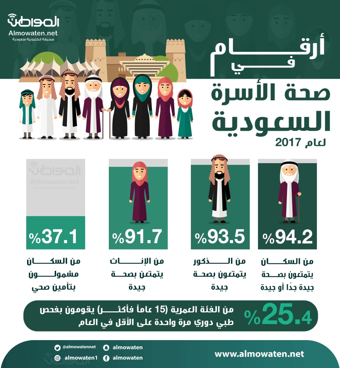 سلطت صحيفة “المواطن” بالإنفوجرافيك، الضوء على تقرير الهيئة العامة للإحصاء (GaStat) الخاص بنتائج مسح صحة الأسرة السعودية 2017م.