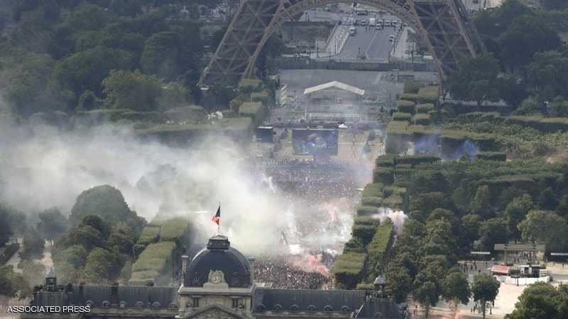 وانتشر في باريس حوالي 4 آلاف شرطي ودركي لحفظ أمن المحتفلین بفوز المنتخب الفرنسي بكأس العالم لكرة القدم.