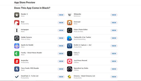 وتضم القائمة ما يصل إلى 16 تطبيقًا مختلفًا، وتحمل اسم Does This App Come In Black.