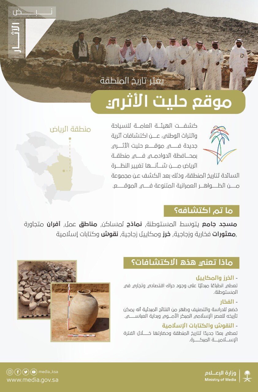 سلط إنفوجرافيك الضوء على موقع حليت الأثري في محافظة الدوادمي بمنطقة الرياض.