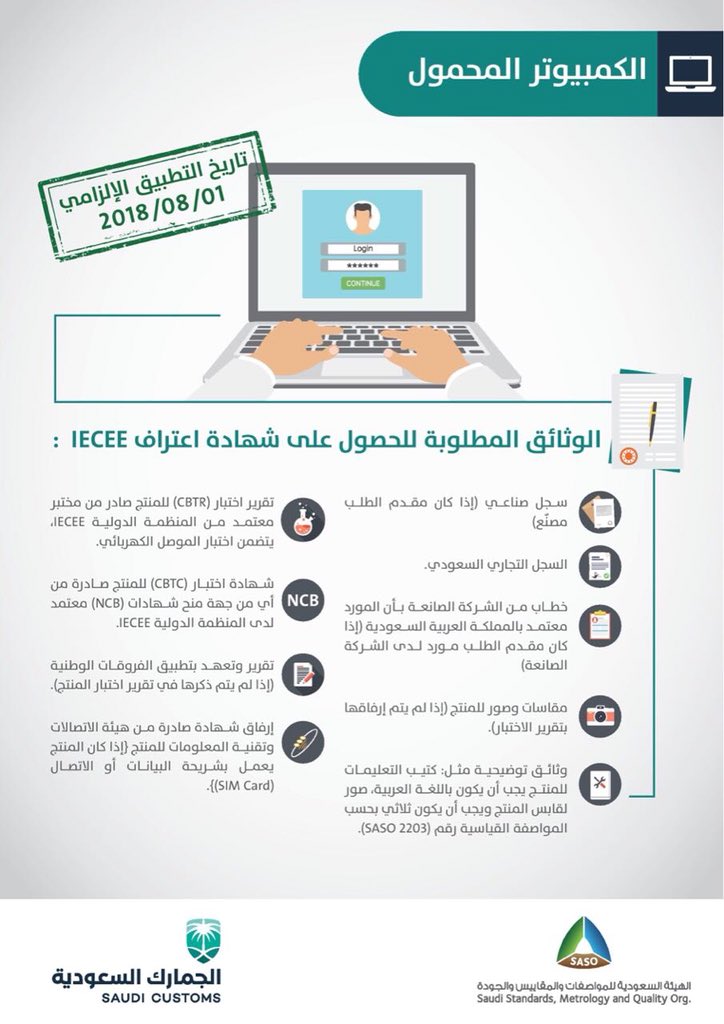 أوضحت الجمارك الوثائق المطلوبة للحصول على شهادة اعتراف IECEE لاستيراد الكمبيوتر المحمول.