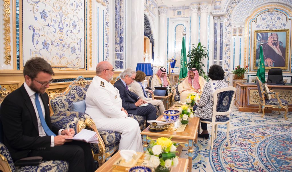 استقبل خادم الحرمين الشريفين الملك سلمان بن عبد العزيز آل سعود – حفظه الله – في مكتبه بقصر السلام بجدة اليوم معالي وزيرة القوات المسلحة الفرنسية السيدة فلورانس بارلي.