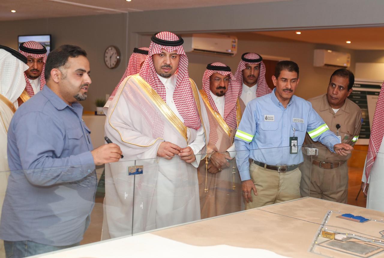 ثم توجه سموه إلى مركز التحكم في المجمع الصناعي لشركة معادن وعد الشمال للفوسفات، والتقى بمجموعة من موظفي الشركة، واستمع لشروحات موسعة عن القدرات والكفاءات البشرية في المركز وإمكاناته الفنية.