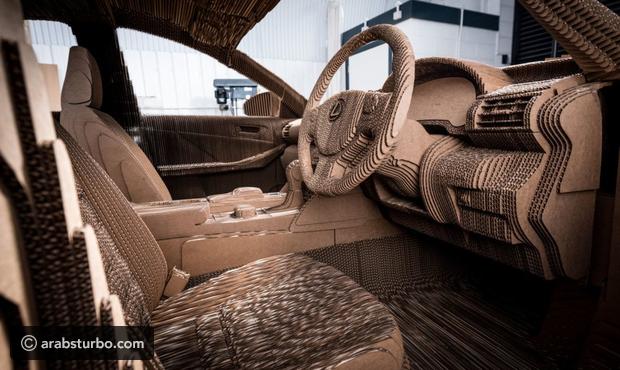 وتتكون السيارة “الكارتونية” من أكثر من 1700 قطعة كرتونية بسماكة 10 ملم وتم تثبيتها باستخدام نوع خاص من الغراء يحتاج إلى 10 دقائق حتى يجب واستغرق بناؤها نحو ثلاثة أشهر.