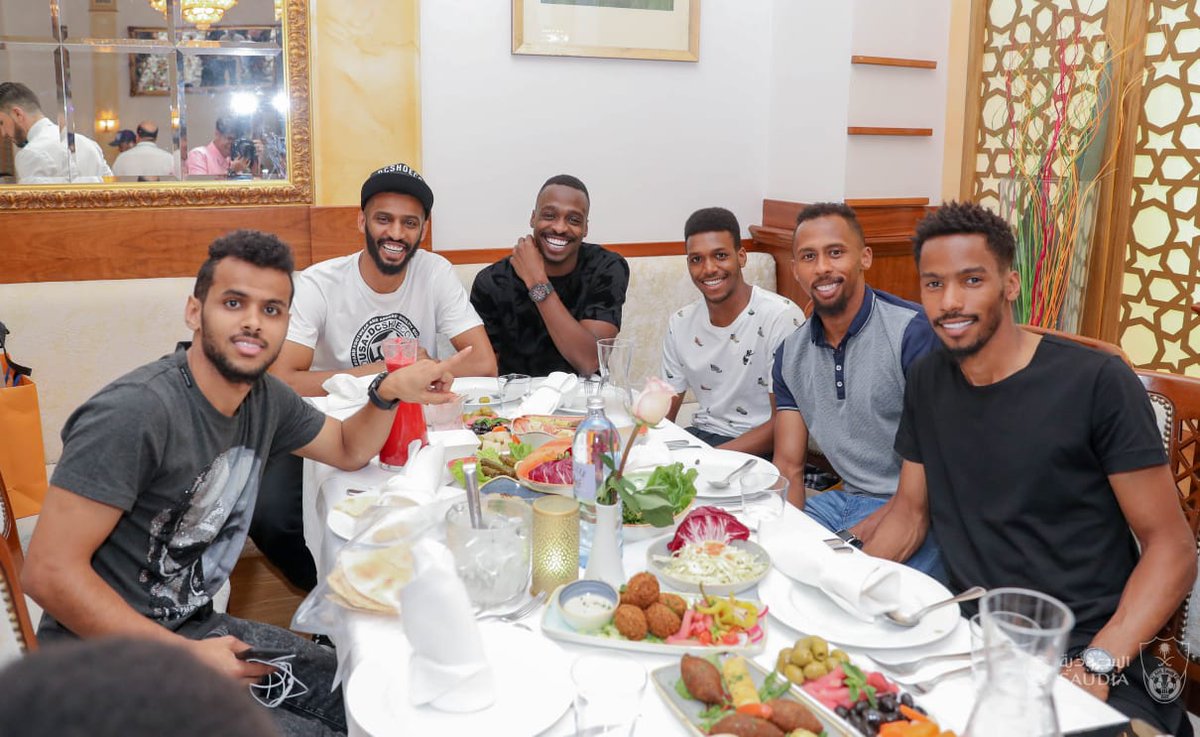 ونشر حساب النادي الأهلي الرسمي على موقع التدوينات القصيرة “تويتر”، صورًا للاعبي الفريق الأول لكرة القدم بالراقي في مأدبة العشاء، وظهرت عليهم علامات السعادة.