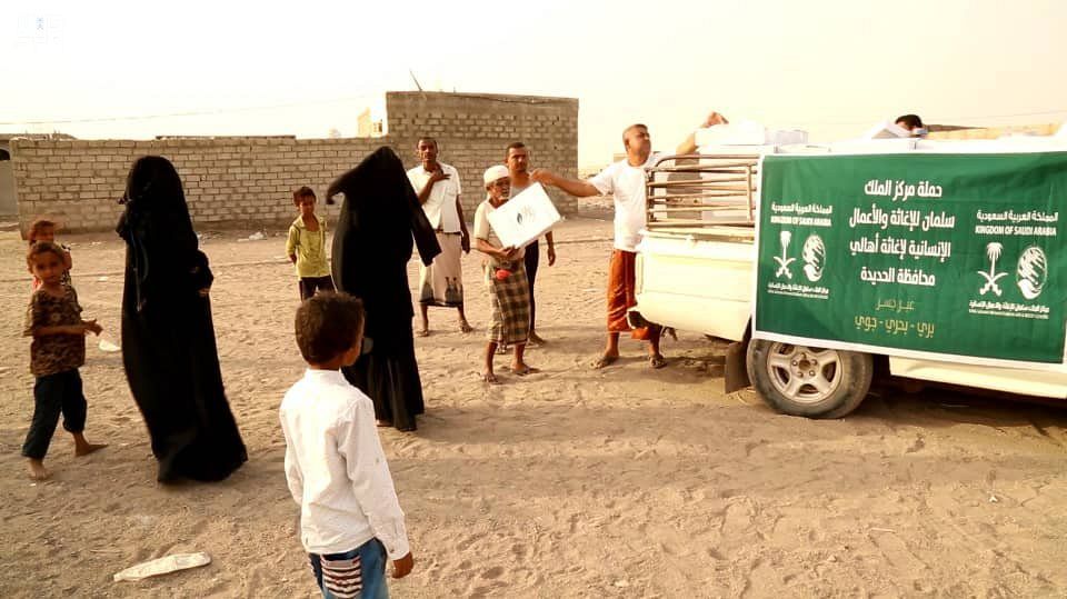 كما وزع مركز الملك سلمان للإغاثة والأعمال الإنسانية اليوم, مساعدات غذائية للنازحين من الحديدة إلى مديرية المخا في محافظة تعز ، حيث تم توزيع 25 طناً و900 كيلو غرام من السلال الغذائية يستفيد منها 2100 نازح.