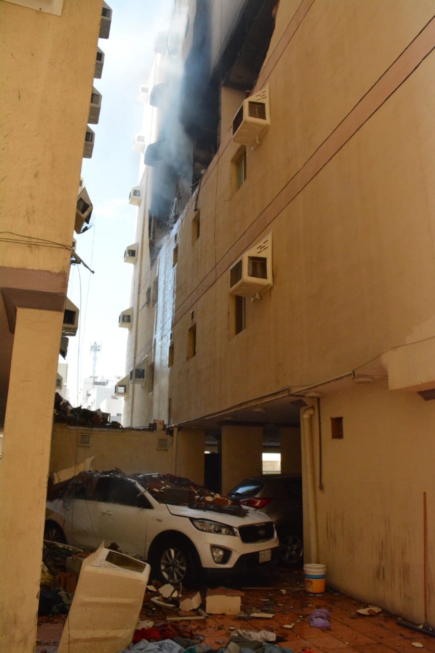 وتابع القرني أن الشقة المحترقة تضررت نتيجة الاحتراق وانهارت أجزاء من جدران الشقة لتأثرها باشتعال لحظي نتيجة تسرب غاز؛ ما أدى لتشبع الشقة بالغاز وباشرت جهة التحقيق مهمتها بالموقع.