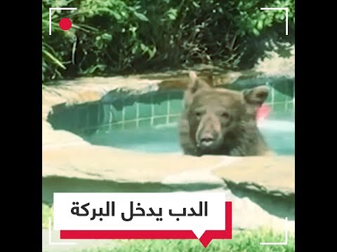 وظهر الدب خلال المقطع وهو يستمتع بالمياه داخل بركة المياه في المنزل هرباً من درجات الحرارة التي تشهدها الولايات المتحدة في مثل هذا الوقت من العام.