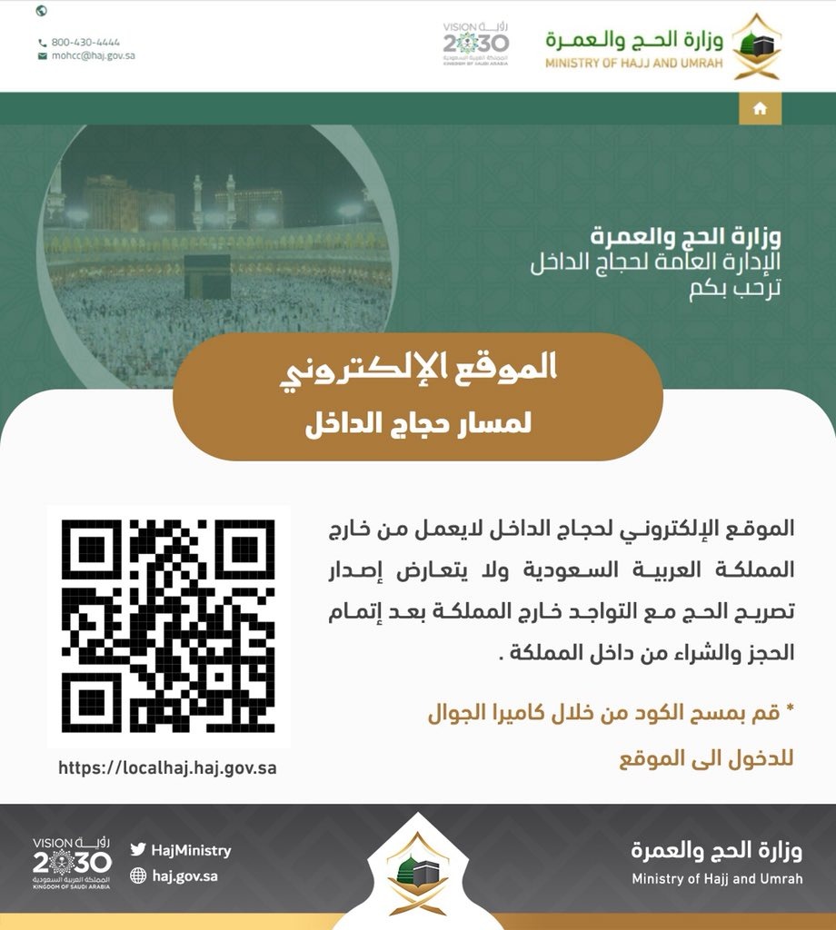 بدأت وزارة الحج والعمرة ، صباح اليوم السبت، التسجيل في المسار الإلكتروني لحجاج الداخل من خلال موقع وزارة الحج والعمرة.