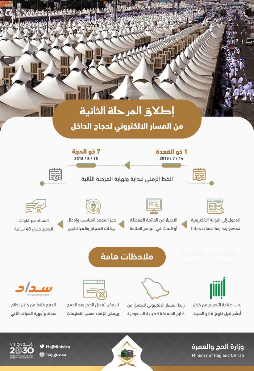 وكانت وزارة الحج قد أشارت إلى أن الموقع الإلكتروني لحجاج الداخل لا يعمل من خارج المملكة ولا يتعارض إصدار تصريح الحج مع التواجد خارج المملكة بعد إتمام الحجز والشراء من داخل المملكة، على أن يبدأ التسجيل في الثامنة صباحًا من غرة ذي القعدة 1439هـ والموافق اليوم السبت.