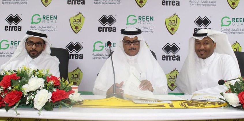 وجرت مراسم التوقيع في مقر نادي أُحد وبحضور رئيس مجلس الإدارة سعود الحربي، والمدير العام لمؤسسة green goal، صالح الصالح، والمدير المالي والإداري عبدالمحسن المحيسن.