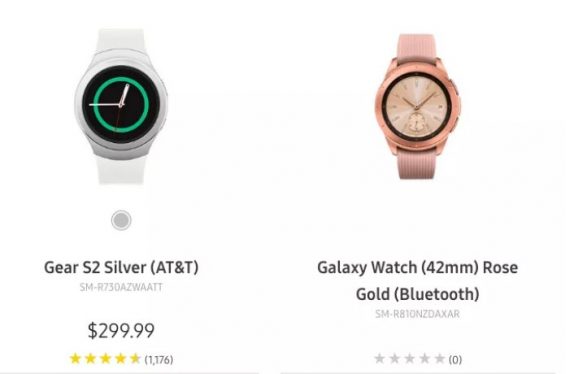 ظهرت صورة لساعة ذكية بقياس 42 مم على الموقع الأميركي لشركة سامسونج الكورية، وذلك ضمن اقتراحات المنتجات على الموقع، والتي يشار إلى أنها هي ساعة Galaxy Watch المنتظرة من سامسونج التي تعمل على تطويرها في الوقت الراهن، ومنتظر إطلاقها في مؤتمر الكشف عن هاتف نوت 9.