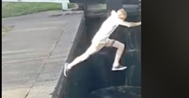وأظهر مقطع فيديو، شابًّا يركض بسرعة محاولًا القفز فوق جسر ليعبر مجرى المياه، لكن اصطدم بالحائط وسقط بطريقة مروعة في المياه.