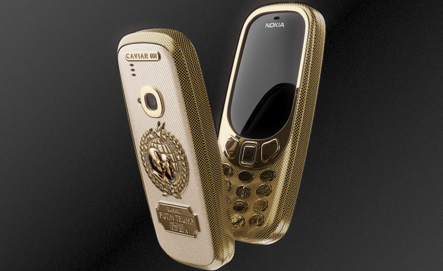 أطلقت شركة Caviar الروسية الشهيرة بطلاء الهواتف الذكية بالمعادن النفيسة، نسخة جديدة من هاتف نوكيا 3310 مصنوعة من التيتانيوم ومغطاة بالذهب عيار 24 قيراطاً، وذلك لتخليد ذكرى قمة ترامب وبوتين في هلنسكى، والتي تأتي تحت اسم “Nokia 3310 Peacemakers”.