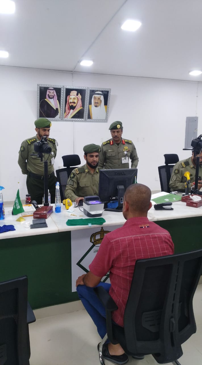 وقد كان باستقبالهم مدير جوازات منطقة الحدود الشمالية والمشرف على أعمال الحج بالمنطقة العميد ثاني بن خليفة العنزي.