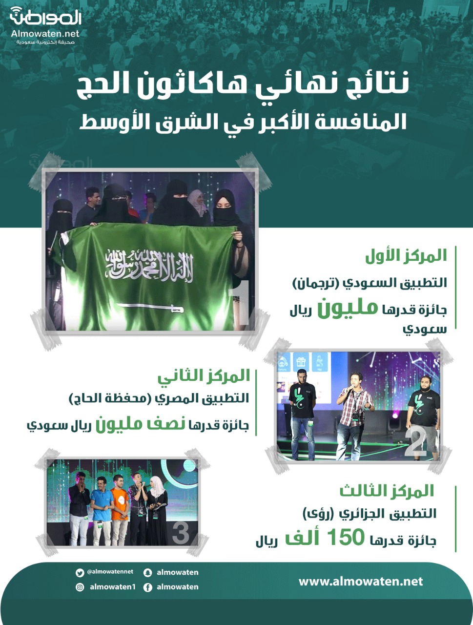 سلطت صحيفة “المواطن” بالإنفوجرافيك الضوء على نتائج نهائي هاكاثون الحج المنافسة الأكبر في الشرق الأوسط.
