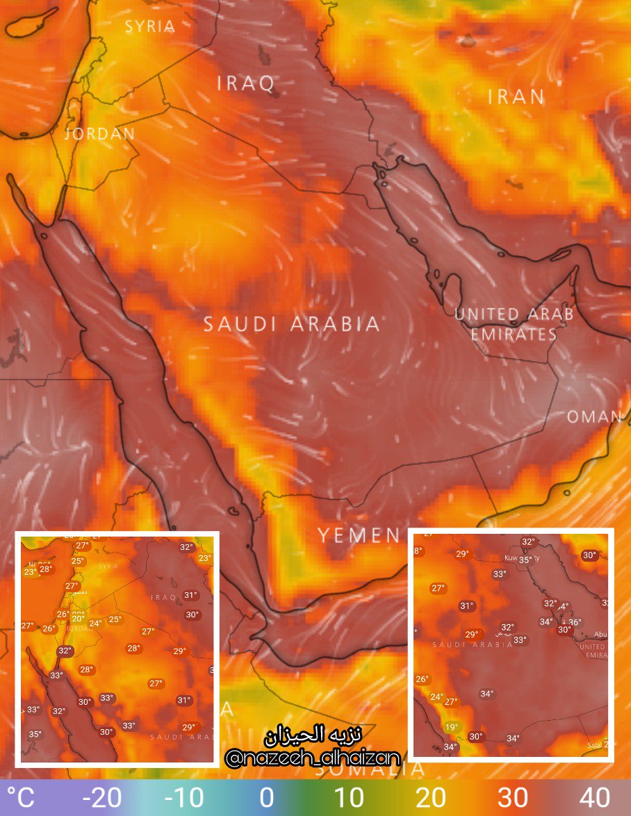 وأوضح الحيزان، في تغريدة له عبر حسابه الرسمي بموقع “تويتر”، أن الحالة تمتد تأثيراتها لأجواء المملكة فتعمل على خفض درجات الحرارة بشكل عام على قطاعات المملكة وخاصة في ساعات الليل، والليل المتأخر، وتكون أكثر انخفاضًا على شمال المملكة بدرجات قد تلامس حاجز 15 درجة.