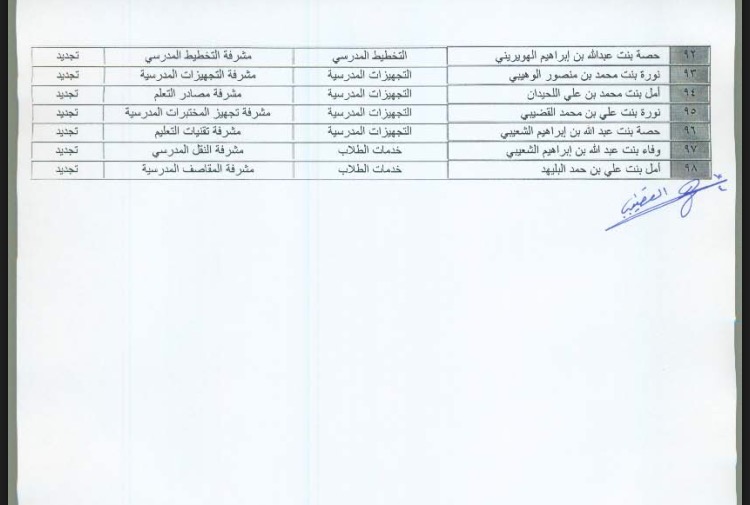 وبيَّن مساعد المدير للشؤون المدرسية، عبدالله بن محمد العقيلي، أن قرار التشكيلات المدرسية تضمن عدد (48) مرشدًا ومرشدة، وعدد (25) أمينًا وأمينة مصادر تعلم، وعدد (6) روَّاد ورائدات نشاط.