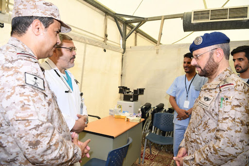 بعدها قام معاليه بزيارة المستشفى الميداني (بالمغمس) والمستشفى الميداني المتنقل بمنى وأطلع على التجهيزات والمعدات الطبية المتوفرة في المستشفى كما تفقد معاليه الكوادر الطبية والصحية وأستمع إلى شرح موجز على الاستعدادات التي تقوم بها الخدمات الطبية للقوات المسلحة لتوفير أفضل الخدمات الصحية لحجاج بيت الله الحرام .