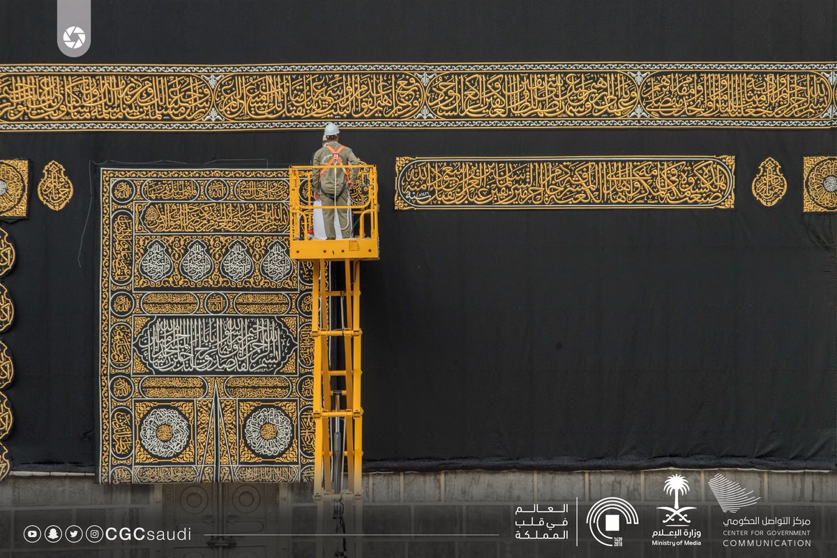 بدأت فجر اليوم الاثنين، التاسع من شهر ذي الحجة، مراسم استبدال كسوة الكعبة المشرفة على يد 160 فنياً وصانعاً، في مراسم تجري بالتزامن مع يوم عرفة.