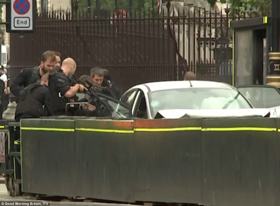وقالت الصحيفة: إن هذا الشخص أسود اللون وكان يقود سيارته بسرعة تصل إلى 50 ميلاً في الساعة، غير أن المركبة تعثرت في الحواجز المثبتة لوقف أي محاولة لاختراق مبنى البرلمان البريطاني، والذي كان خاليًا وقت الحادث.