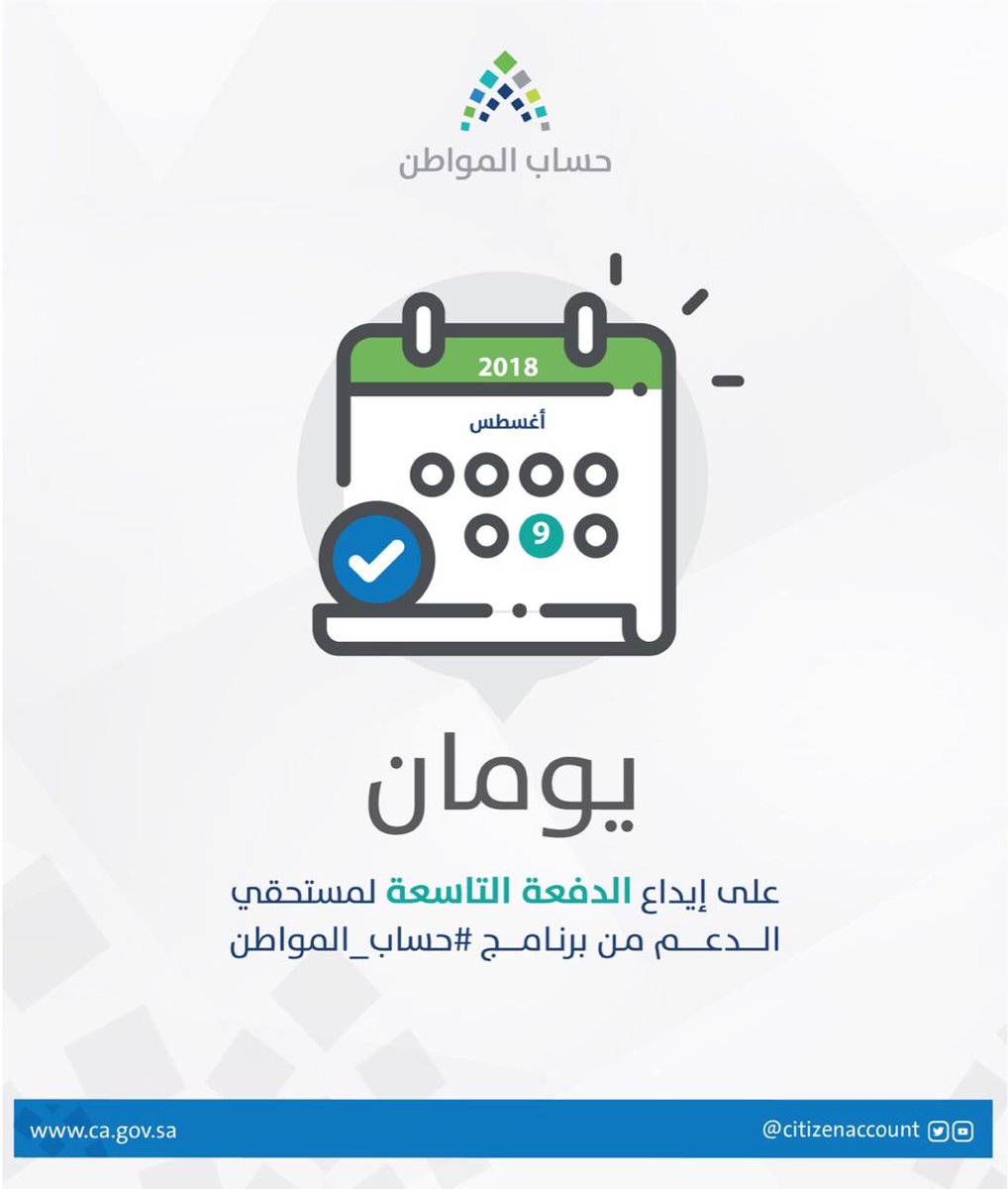 أكد حساب المواطن أن يوم الخميس المقبل الموافق 9 أغسطس، هو آخر موعد للتسجيل ضمن دورة الدفع المقبلة رقم 10 لشهر سبتمبر.