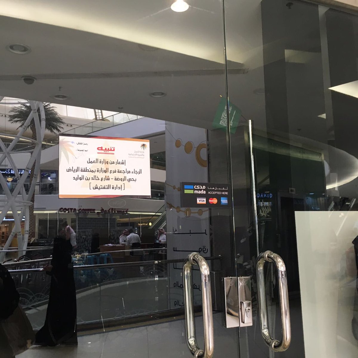 زارت مفتشات وزارة العمل في الرياض، 82 محلًّا تجاريًّا بأحد المجمعات شمال العاصمة.