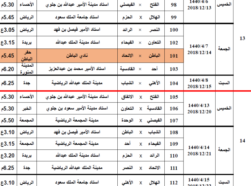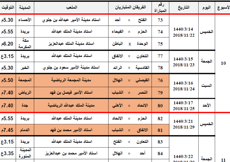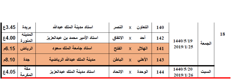 أصدر الاتحاد السعودي لكرة القدم الجدول المعدل لمباريات دوري كأس الأمير محمد بن سلمان للمحترفين موسم 2018- 2019.