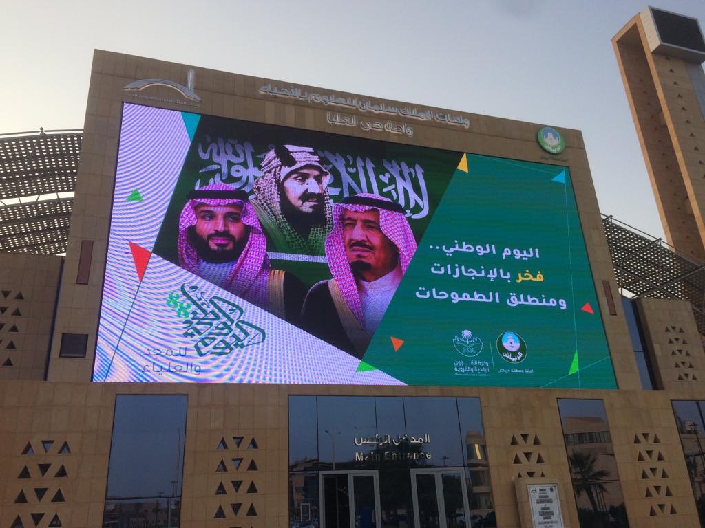 وفي سياق متصل، تزينت مدينة الرياض وارتدت حلة خضراء لتظهر في أبهى تجلياتها احتفاء باليوم الوطني الـ٨٨، بعد أن نفذت أمانة منطقة الرياض العديد من البرامج والفعاليات، والتي تمثلت في نشر الأعلام الخفاقة والمجسمات المضيئة والبالونات الضخمة واللافتات الوطنية ومبادرات التشجير في مواقع متفرقّة من العاصمة.