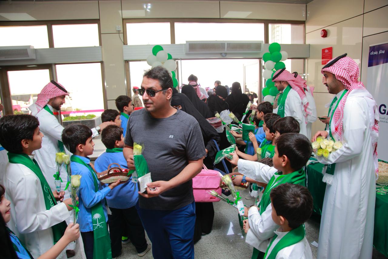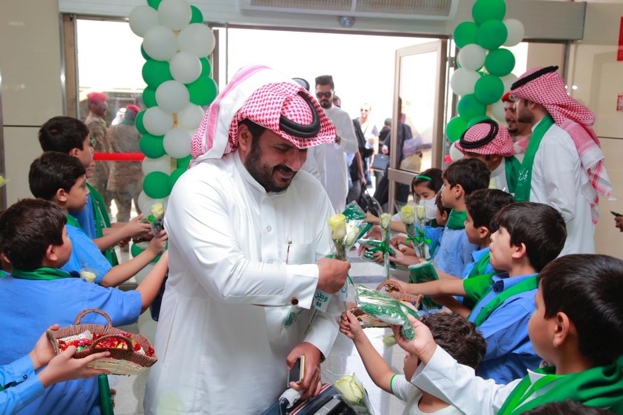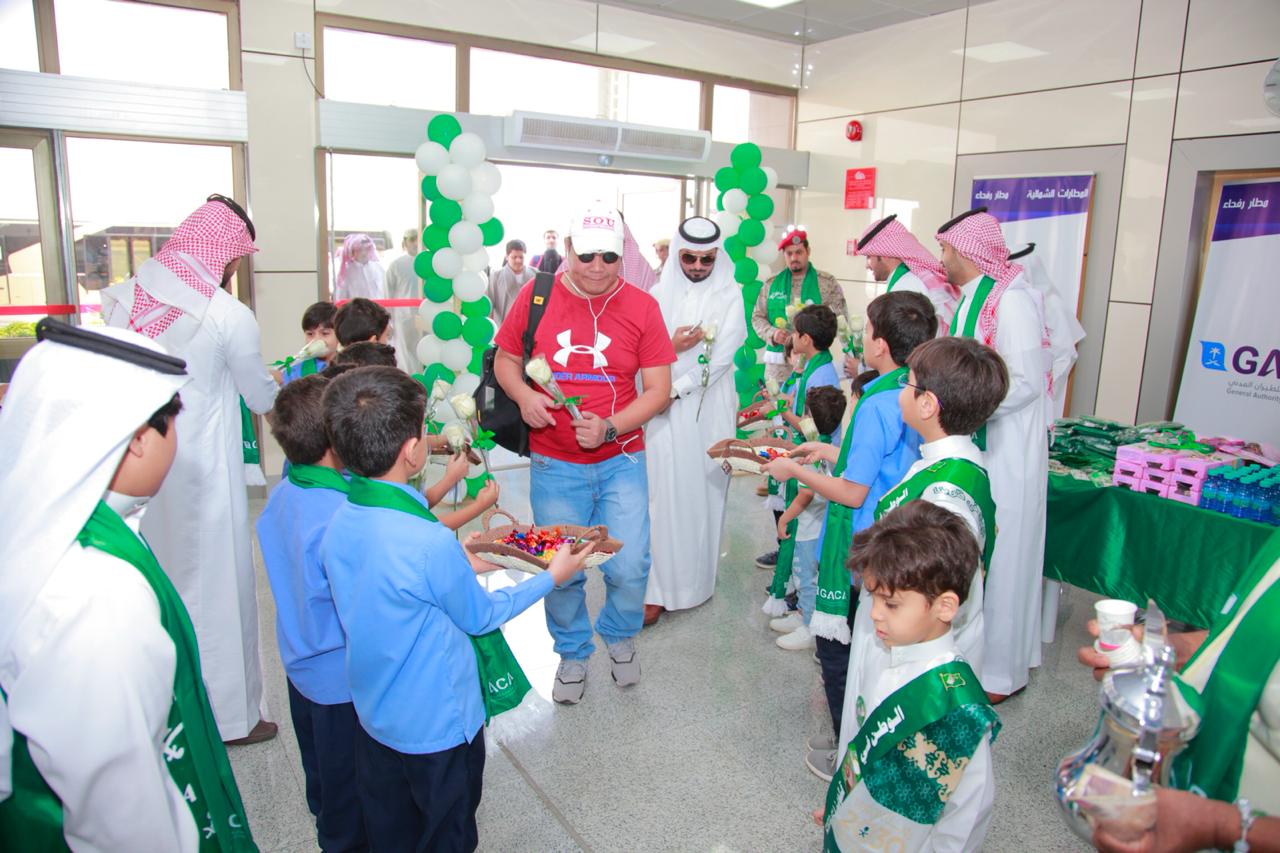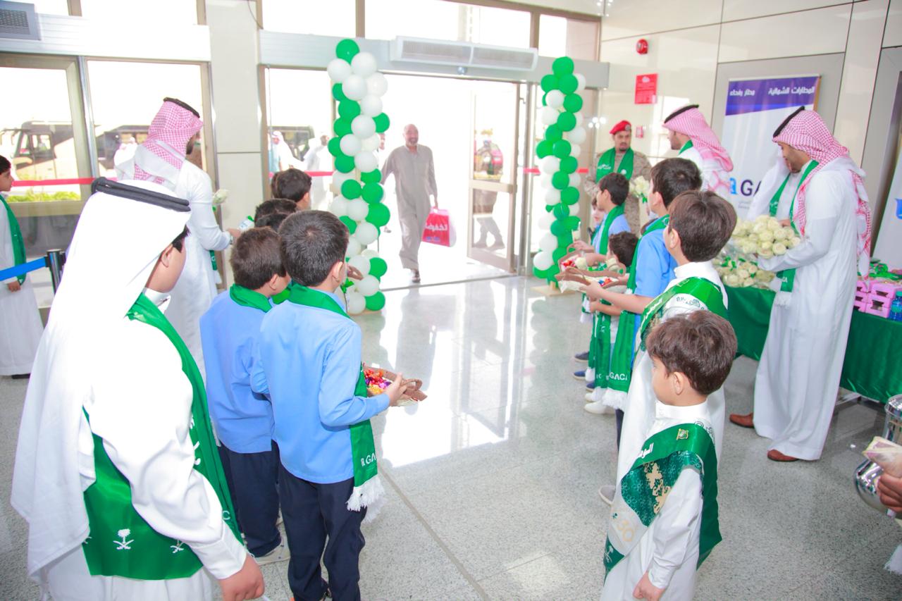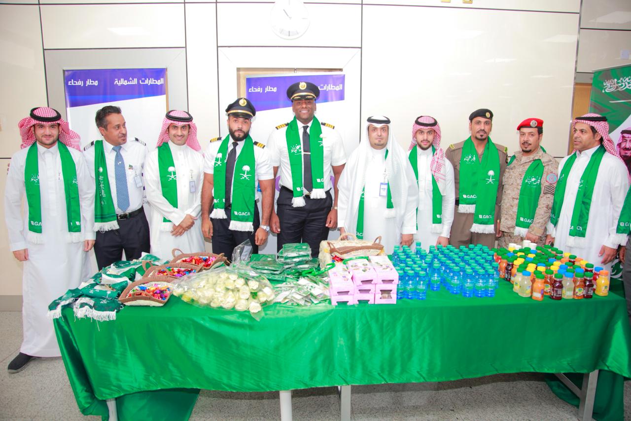 احتفل مطار محافظة رفحاء اليوم الأحد بمناسبة اليوم الوطني الـ88 للمملكة، حيث استقبل منسوبو المطار المسافرين بالهدايا والأوشحة الخضراء والحلوى والقهوة العربية احتفاء بهذه المناسبة السعيدة.
