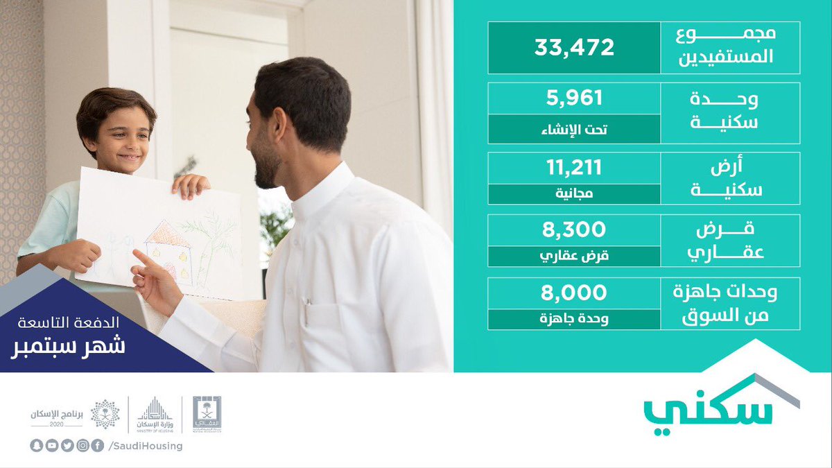 وأوضحت وزارة الإسكان أن مجموع المستفيدين بالدفعة التاسعة بلغ 33.472 مستفيدًا على مستوى المملكة.
