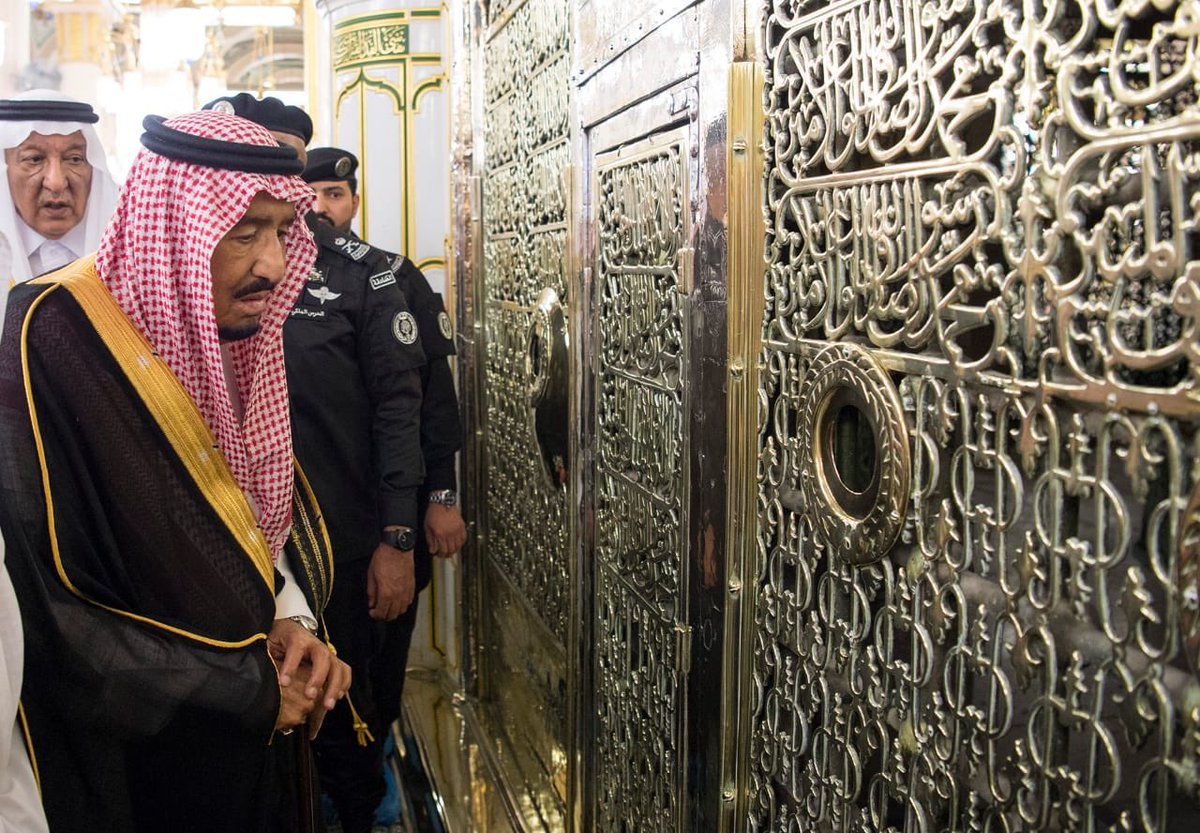 زار خادم الحرمين الشريفين الملك سلمان بن عبدالعزيز آل سعود فور وصوله المدينة المنورة اليوم المسجد النبوي.