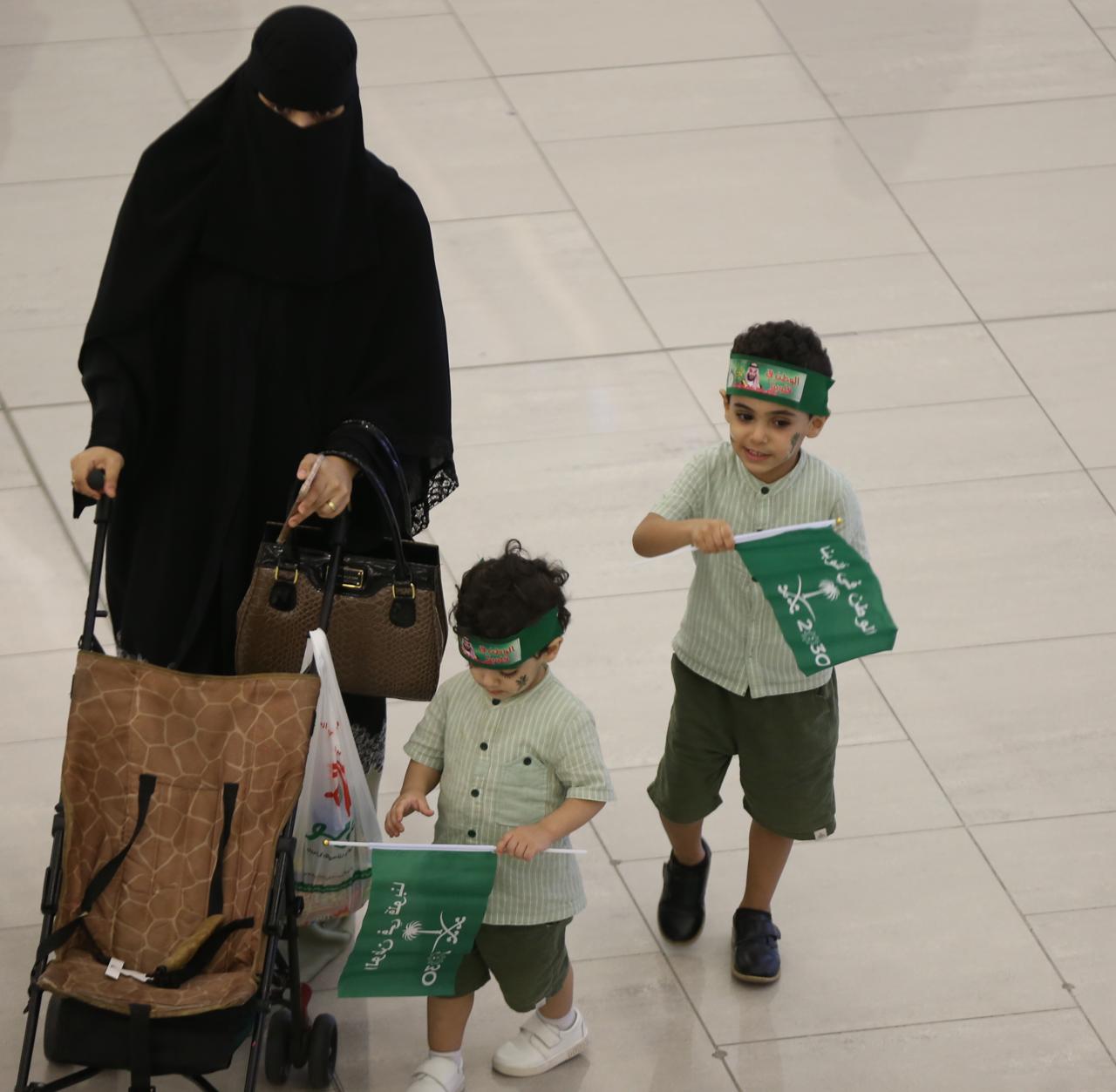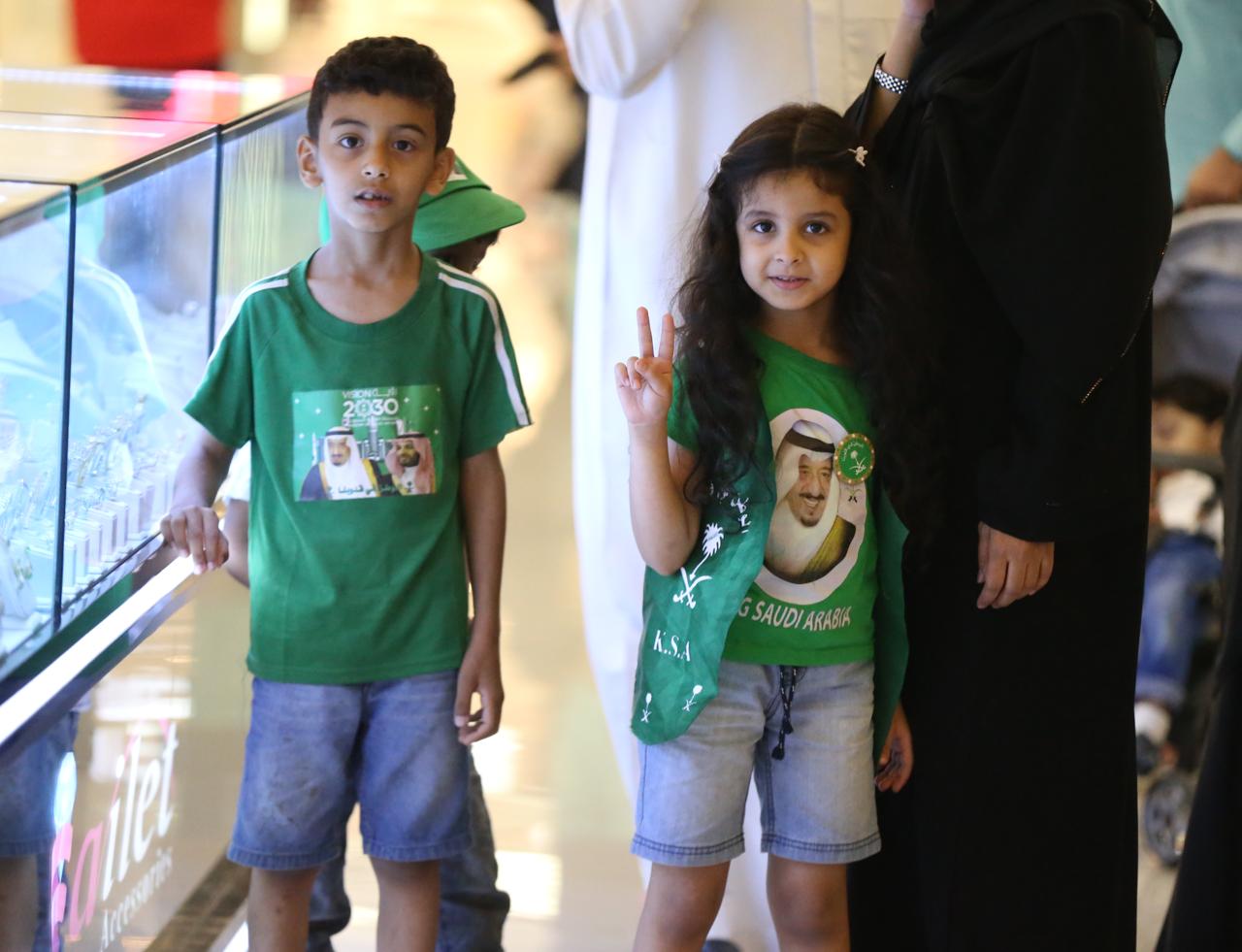 واستعدت تلك العائلات والأسر في أيضاح أهمية اليوم الوطني لأطفالها ليعايشوا حب الوطن الاحتفال بهذا اليوم الخالد في وجدان الوطن، حيث ارتدوا الزي بالألوان الخضراء ولوحوا بعلم راية التوحيد.