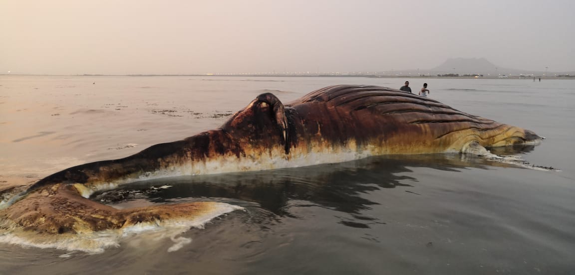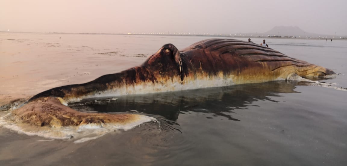 وبيّن حمضي أنه بعد الكشف عليه تبين أنه حيوان بحري من نوع الحوت الأحدب الذي يعتبر من أكبر الكائنات البحرية، ويعيش بالمحيطات، ويصل طول الحيتان البالغة منه إلى 15م تقريباً، ويتراوح محيط جسمه ما بين 4 – 6م، مضيفاً أن هذا الحوت يعد من فصيلة الحيتان البالينية ويوجد أحياناً بالبحر الأحمر.