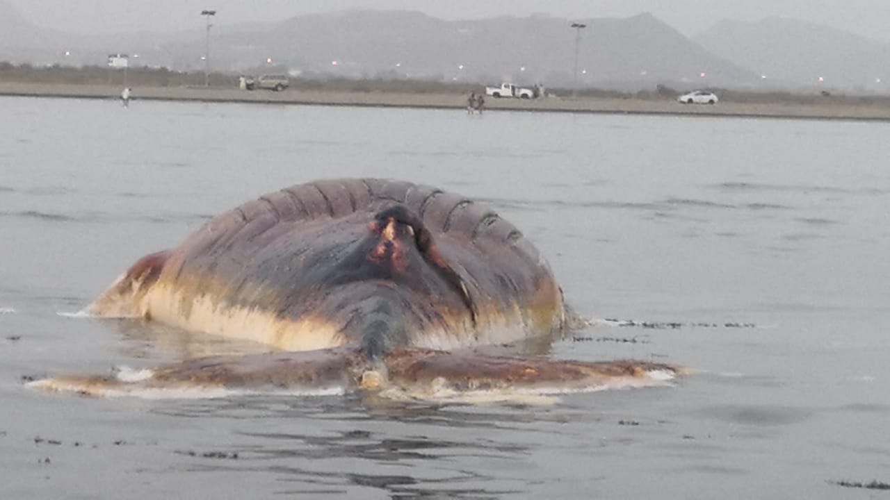 كشفت وزارة البيئة والمياه والزراعة عن نفوق حيوان بحري من نوع الحوت الأحدب في شاطئ مركز القحمة بمنطقة عسير، وذلك في يوم السبت 5 محرم 1440هـ، الموافق 15 سبتمبر 2018م.